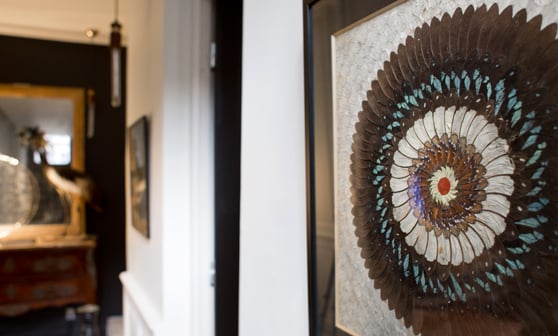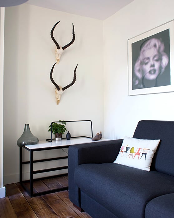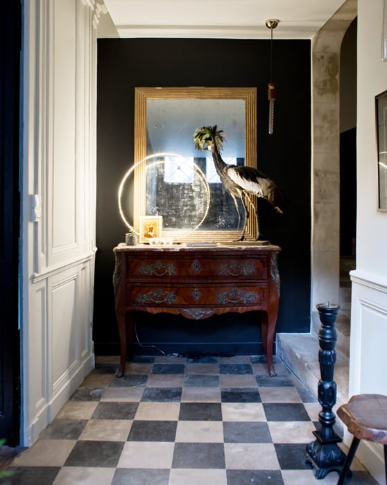 La grue empaillée surnommée Colette en référence au parfum « un air de Colette » qui flotte dans la maison dès l’arrivée !