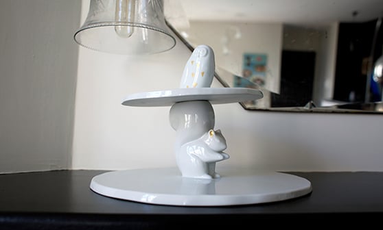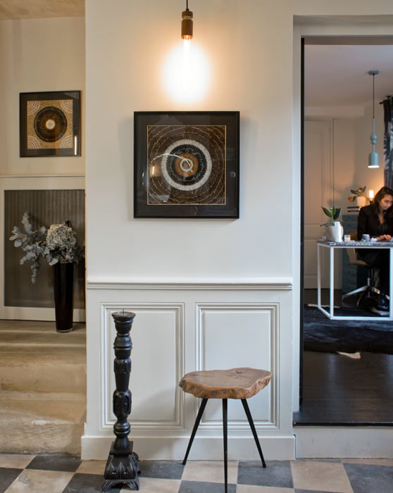 Tabouret vintage, Pique-cierge XIX ème, Suspensions vintage chinées à Helsinki lors d’un reportage