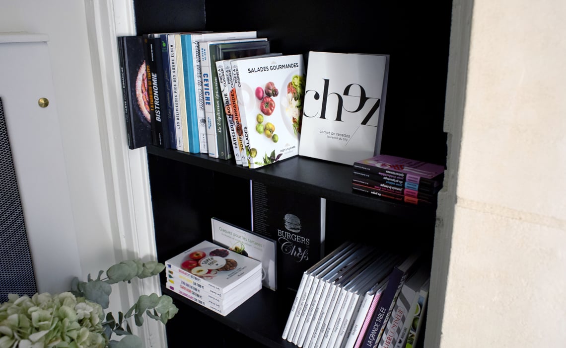 Bibliothèque de livres de cuisine à la disposition des hôtes