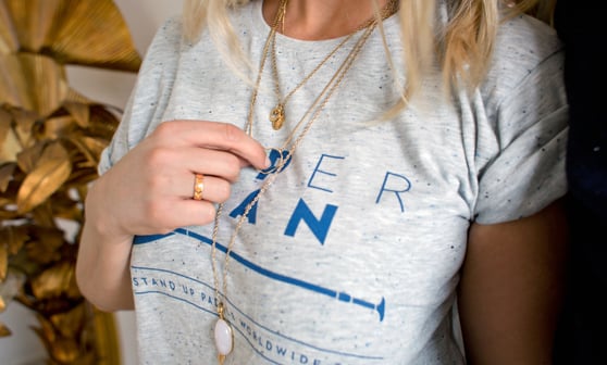 Delphine: Bliss Rose et Pascale Monvoisin pour les bijoux, Free People pour le "gyspy", Hermès pour mon cou, Nike pour la forme.