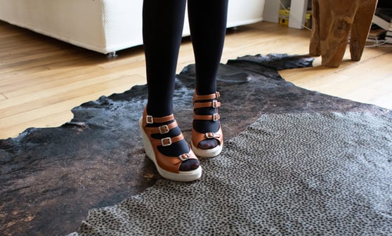Delphine: deux paires de chaussures que j’adore et que l’on voit sur les photos: les Sandales Free People et APC.