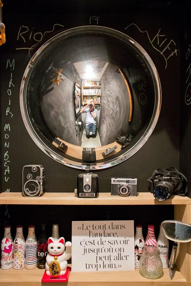 Miroir et Appareils photo vintage, Chat porte bonheur de Tokyo