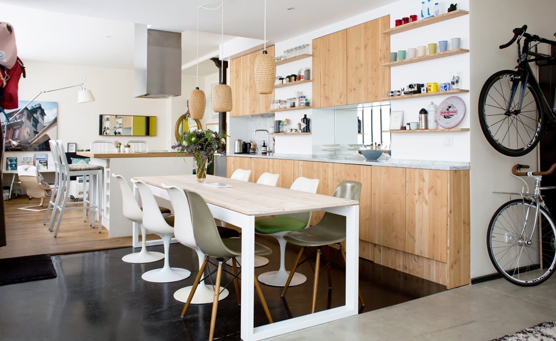 Table Atelier Panama, Chaises Eero Saarinen et Charles Eames