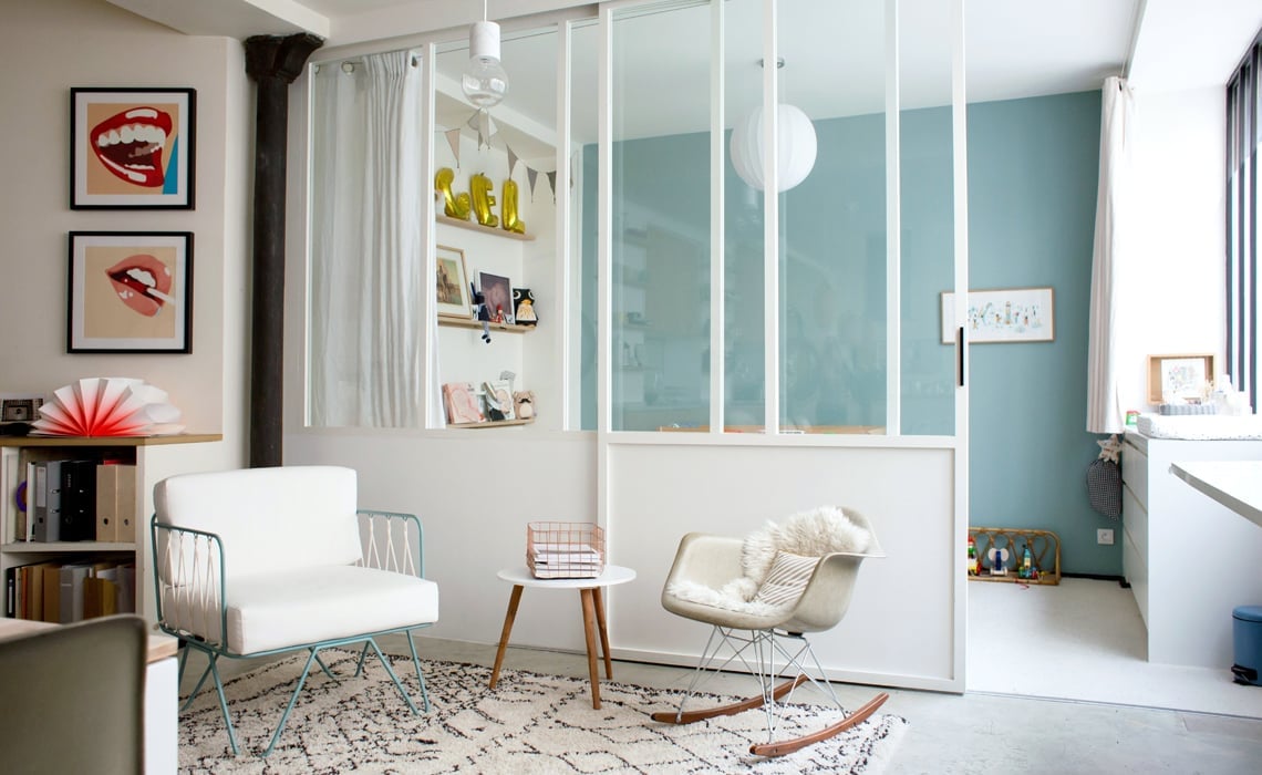 Lampe Toloméo Artemide, (petite) Lampe Gras, Chaise pour enfant Jacques Hitier, Panier Honoré