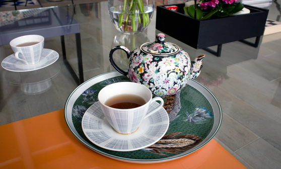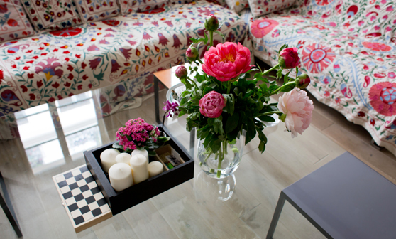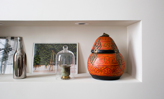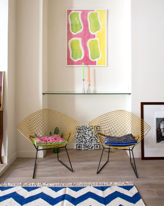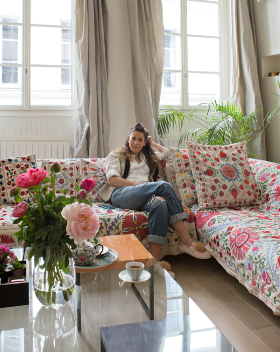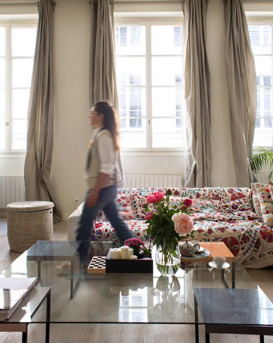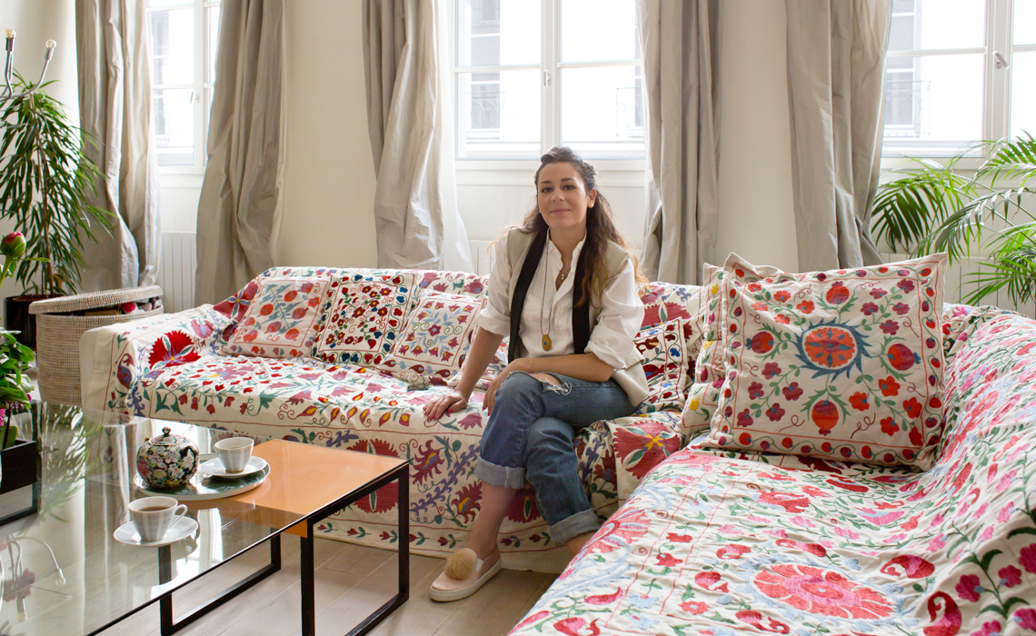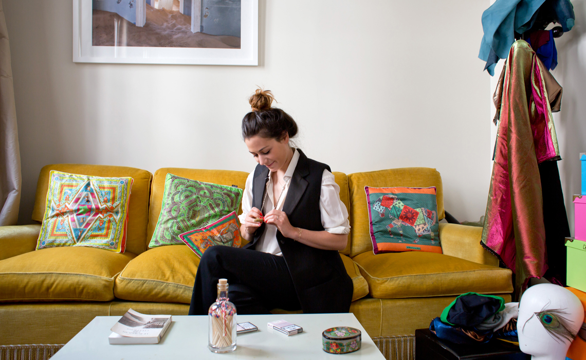 Une photo de Cindy Sherman, une table prouvé, un canapé en velours vert émeraude...